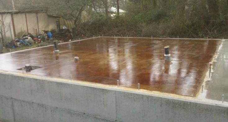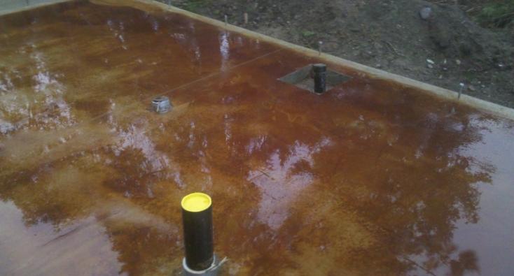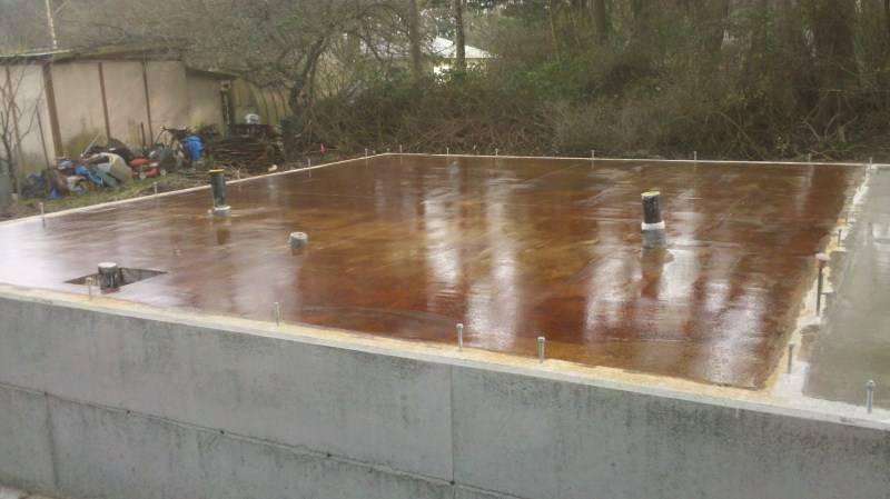 SCC completed the concrete on this new home for a couple moving to Port Townsend. Working directly for the homeowner, we were involved in this home at various phases from start to finish – beyond just concrete, we helped the out-of-town homeowners locate reputable sub-contractors and answered questions whenever possible. The scope of this project includes a foundation, garage slab, acid-stained, colored interior slab, and exterior flatwork. The interior slab is ‘earthen’ colored with the mahogany acid stain applied using a ‘swirled’ technique. It was a pleasure to help this couple create their dream retirement home!