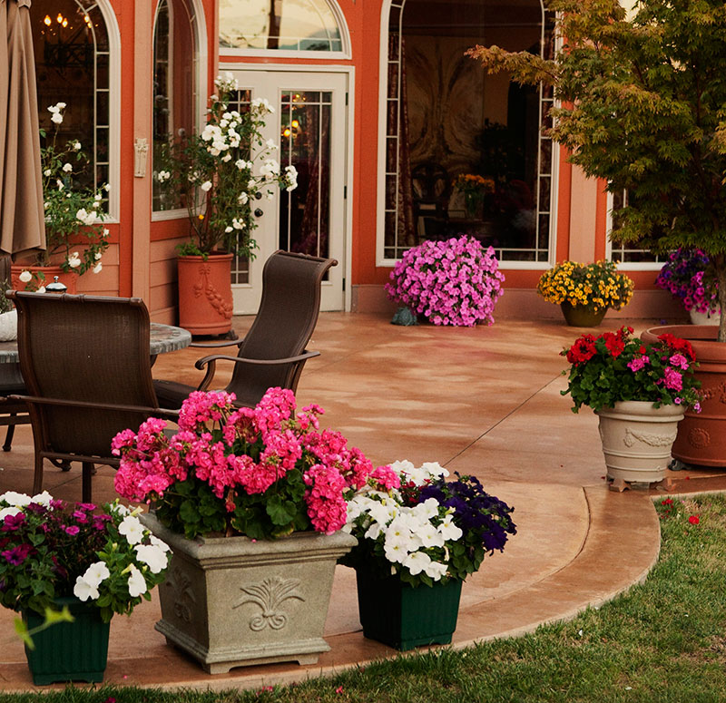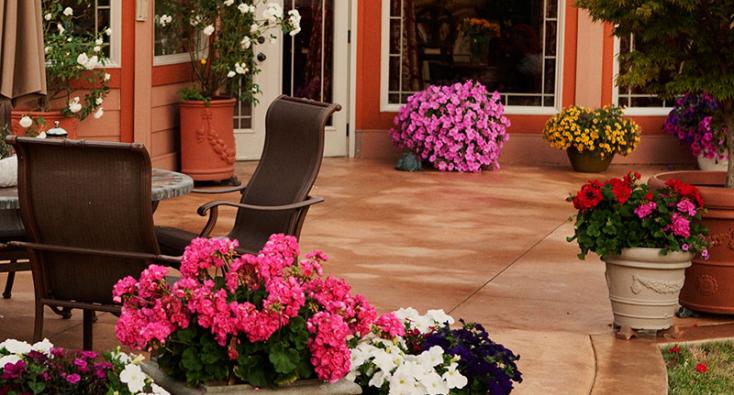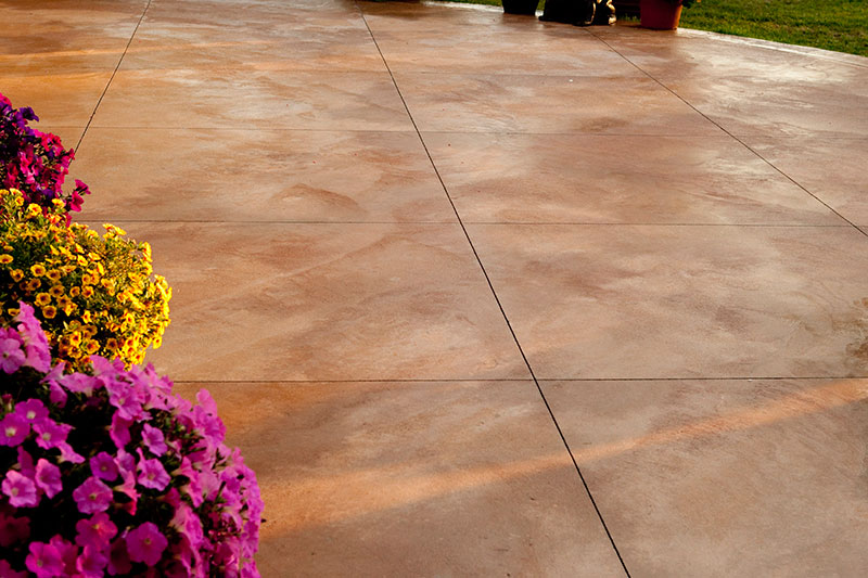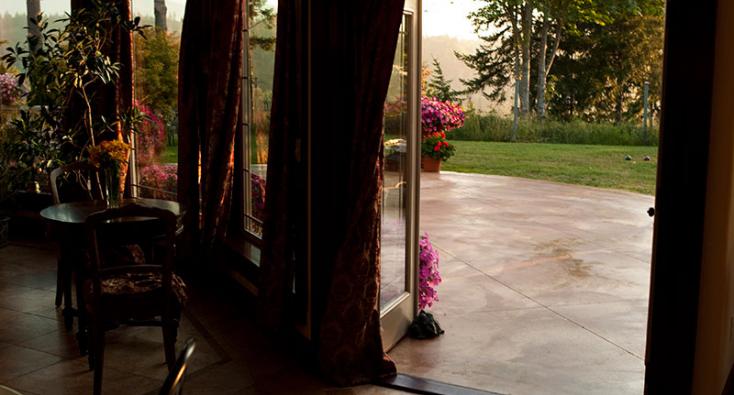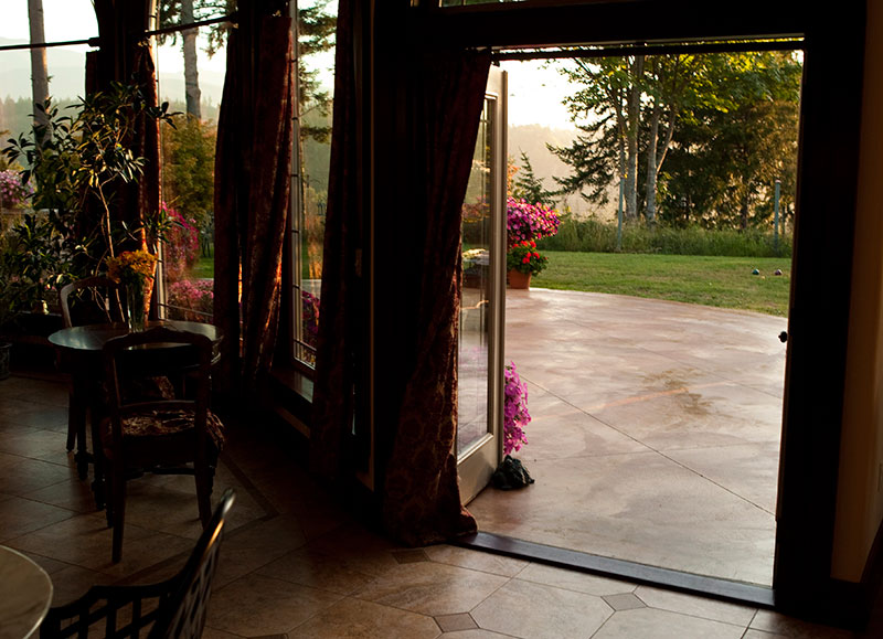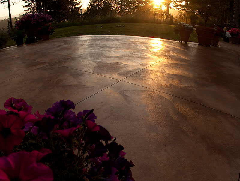 SCC was pleased to design and install this patio for a beautiful custom home in Port Angeles. These customers were looking for a large outdoor living space with several options for entertaining. After exploring finishes and design elements with us, they chose ‘Sonoma Gold’ colored concrete in an SCC Custom finish with large, diamond architectural saw-cuts. The design wrapped two sides of the residence with rounded and straight edges, following the exterior lines of their bay windows and siding. It was a perfect solution to complement the warm styling of their French-country home.